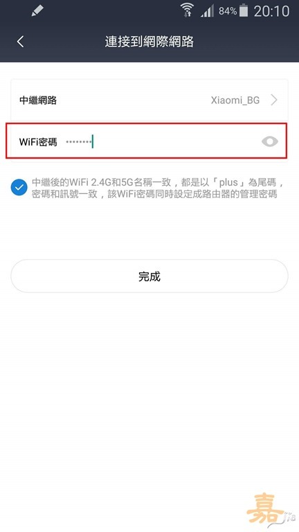 輸入這個 WiFi SSID 的密碼,輸入完後,點選"完成"